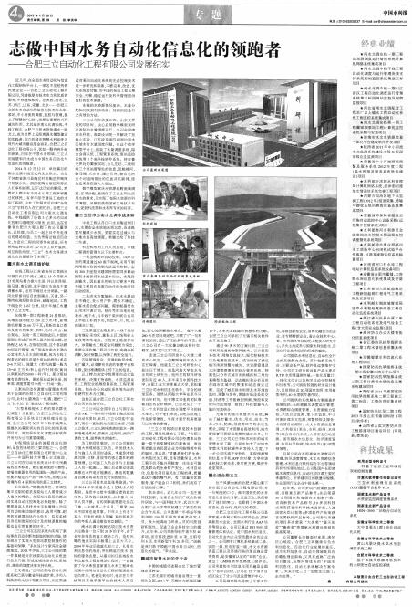 2015年4月28日第3623期《中國水利報》在第四版整版專題報道了我司近年的發(fā)展歷程,文章中高度肯定、贊許我公司近年來在水利自動化和信息化方面的努力結(jié)果。