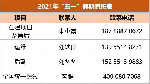 由于公司放假給大家?guī)?lái)的不便我們深表歉意,再次感謝大家一直以來(lái)對(duì)我司的關(guān)注及支持。放假期間,公司投標(biāo)及在建項(xiàng)目等工作正常進(jìn)行,各部門(mén)已做好工作安排,電話保持24小時(shí)暢通,如有需求,請(qǐng)您直接撥打相關(guān)負(fù)責(zé)人員電話。