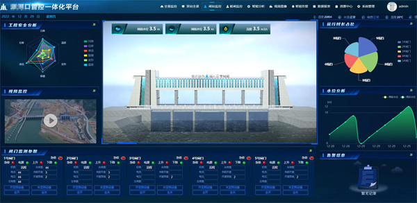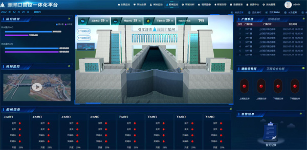 展示閘站的運(yùn)行和控制信息,涵蓋閘門運(yùn)行狀態(tài)的監(jiān)測(cè)、工程安全監(jiān)測(cè)、視頻監(jiān)控、閘門監(jiān)測(cè)參數(shù)、運(yùn)行時(shí)長(zhǎng)占比、水位分析、告警信息、閘前水位、閘后水位、流量等統(tǒng)計(jì)信息。