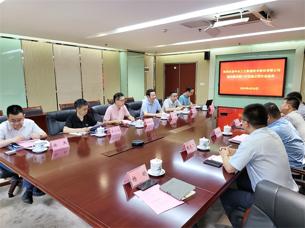 6月25日,中水三立副總裁成銀率隊前往中水珠江規(guī)劃勘測設計有限公司,就智慧水利、數(shù)字孿生技術(shù)進行座談交流,楊建超副總經(jīng)理等陪同參會。中水珠江規(guī)劃勘測設計有限公司總經(jīng)理、黨委副書記蔣翼,經(jīng)營處處長杜永江,工程數(shù)字技術(shù)研究院院長傅志浩,水利水電規(guī)劃院數(shù)字流域研究中心主任廖小龍,工程數(shù)字技術(shù)研究院智慧水利技術(shù)中心主任楊楚驊,廣州珠源信息技術(shù)有限公司總經(jīng)理徐兵等相關(guān)部門負責人參加座談。
