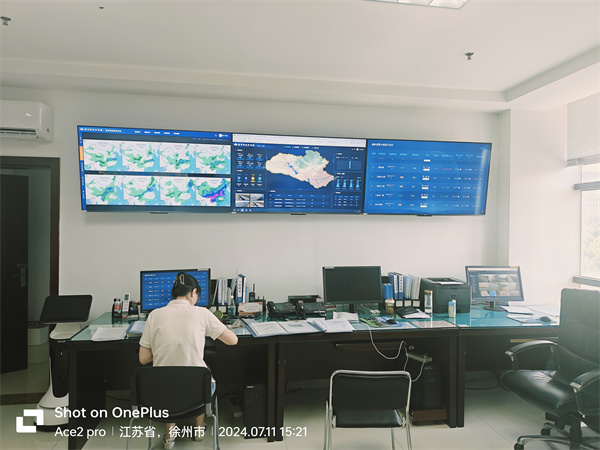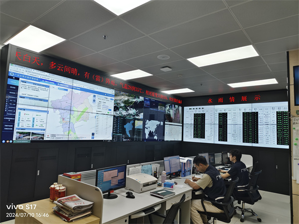 在沂沭泗水利管理局防汛值班室,值班人員通過大屏可實(shí)時(shí)查看歷史/實(shí)時(shí)水文數(shù)據(jù),系統(tǒng)仿真模擬展現(xiàn)流域洪水演進(jìn)、洪水淹沒等洪水過程,獲取洪峰流量、洪峰達(dá)到時(shí)間及洪水水位等洪水關(guān)鍵信息,為區(qū)域安全度汛提供科學(xué)支撐。