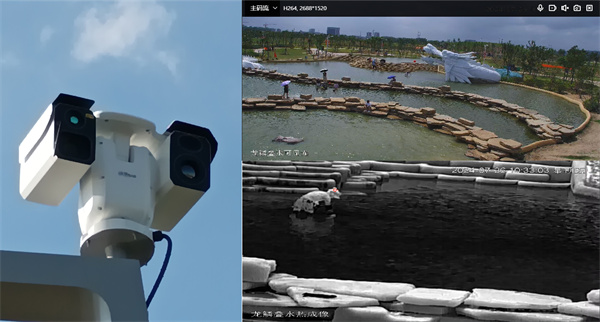 龍子湖東南片公園面積較大,龍鱗疊水、金沙灘、游龍棧道等處游客眾多,存在一定安全隱患。智慧一體桿頂端部署了熱成像觀測(cè)型四目中型云臺(tái)監(jiān)控系統(tǒng),滿足景區(qū)夜間/惡劣天氣、中/遠(yuǎn)距離監(jiān)控清晰成像的需求,公園防火防災(zāi)、禁漁禁捕、水環(huán)境污染監(jiān)測(cè)、防溺水等場(chǎng)景的一舉一動(dòng)盡收眼底,實(shí)現(xiàn)“全覆蓋、全天候、智能化”監(jiān)管。
