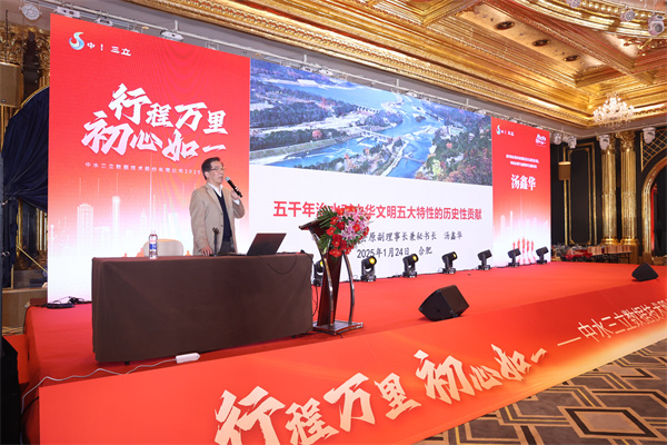 湯鑫華會長則以其淵博的歷史學識,帶來了《五千年治水對中華文明五大特性的歷史性貢獻》專題分享。他從宏大的歷史視角出發(fā),深刻揭示了治水活動在中華文明形成、發(fā)展及繁榮過程中的歷史性貢獻,展現了治水文化所蘊含的深厚智慧與不竭動力。湯會長的分享不僅激發(fā)了現場嘉賓對治水文化的深刻共鳴,更為中水三立人傳承和弘揚企業(yè)文化提供了寶貴的精神財富。