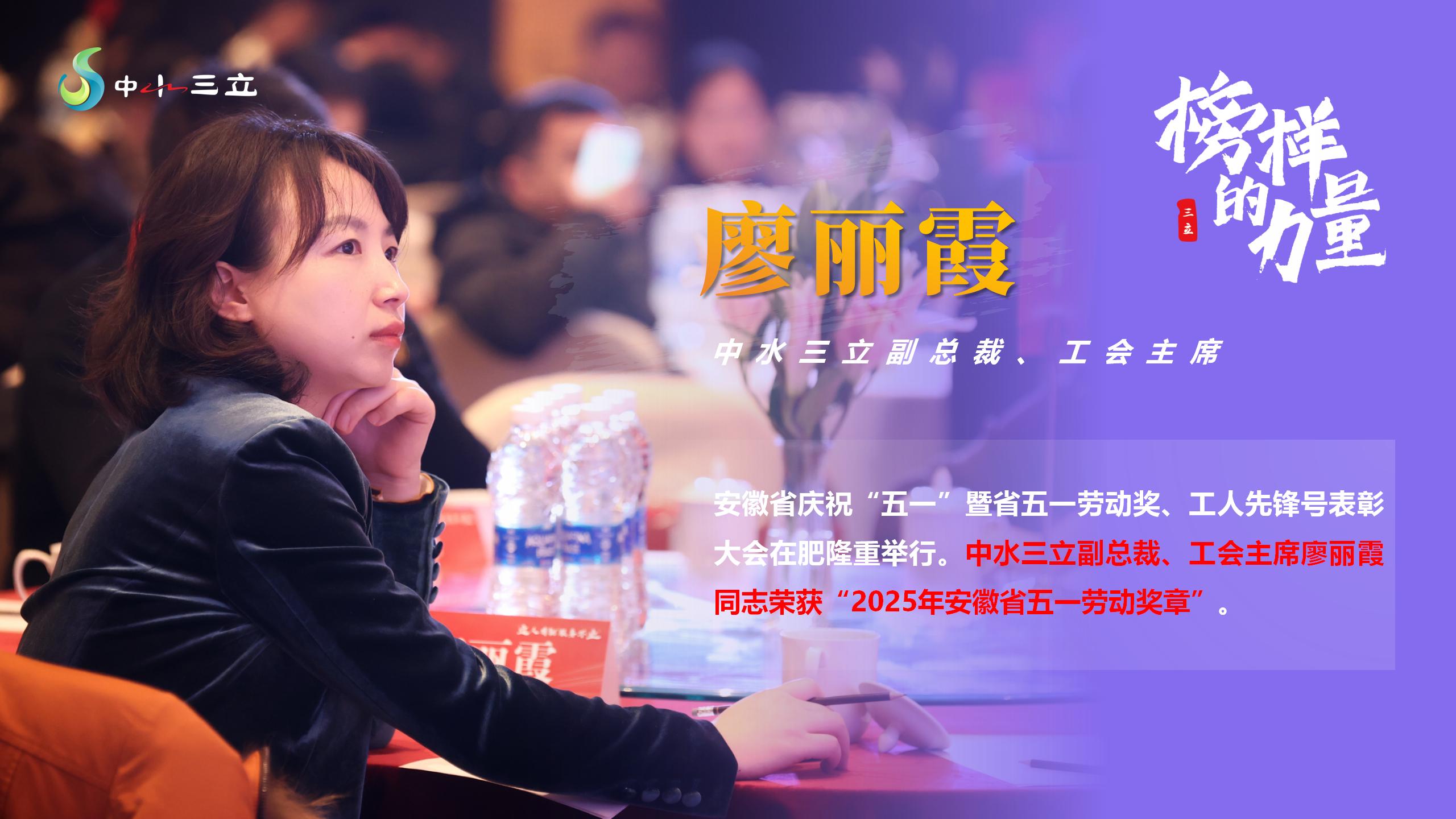 近日,安徽省慶?!拔逡弧濒呤∥逡粍趧?dòng)獎(jiǎng)、工人先鋒號(hào)表彰大會(huì)在合肥隆重舉行,充分發(fā)揮勞模先進(jìn)的榜樣作用,奮力譜寫中國式現(xiàn)代化安徽篇章貢獻(xiàn)智慧和力量。中水三立副總裁、工會(huì)主席廖麗霞同志榮獲“2025年安徽省五一勞動(dòng)獎(jiǎng)?wù)隆薄?/span>