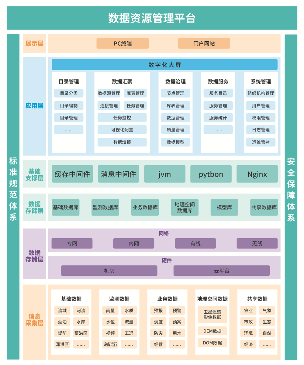 數(shù)據(jù)資源管理平臺的總體架構(gòu)共分為六層:
